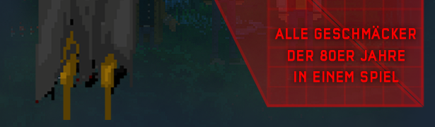 - Alle Geschmacksrichtungen der 80er Jahre in einem einzigen Spiel gehen auf eine einfachere Zeit zurück, in der Tapes gemixt wurden, wo der Commodores 64 der König war, Kinder spät abends draußen spielen konnten und das einzige, worüber man sich Sorgen machen musste, DER GIGANTISCHE KILLER-ALIEN WAR, DER DICH UND DEINE FREUNDE KRIEGEN WILL.