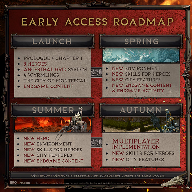Dragonkin: The Banished, Erken Erişim sırasında ek içeriklerle düzenli olarak güncellenecek. Yeni bir kahraman, yeni biyomlar, ve yeni Oyun Sonu seçenekleri eklenecek. Yakında daha fazla bilgi paylaşacağız.