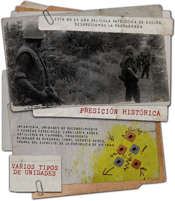 Experimenta una historia de soldados y su comandante, atrapados dentro de conflictos sangrientos, caóticos y moralmente ambiguos en Vietnam. Sumérgete dentro de un escenario que no evita los problemas de civiles atrapados en la guerra, operaciones turbias de la CIA y cínicas presiones políticas. Descubre esas incómodas situaciones, presentadas en clásicos de culto tales como Pelotón, Full Metal Jacket o Apocalipsis Ahora, todo eso sucedía diariamente para aquellos que estaban sirviendo en Vietnam. Mira por ti mismo qué tan difícil es tomar las decisiones correctas en medio de un intercambio de fuego con Vietcong.
