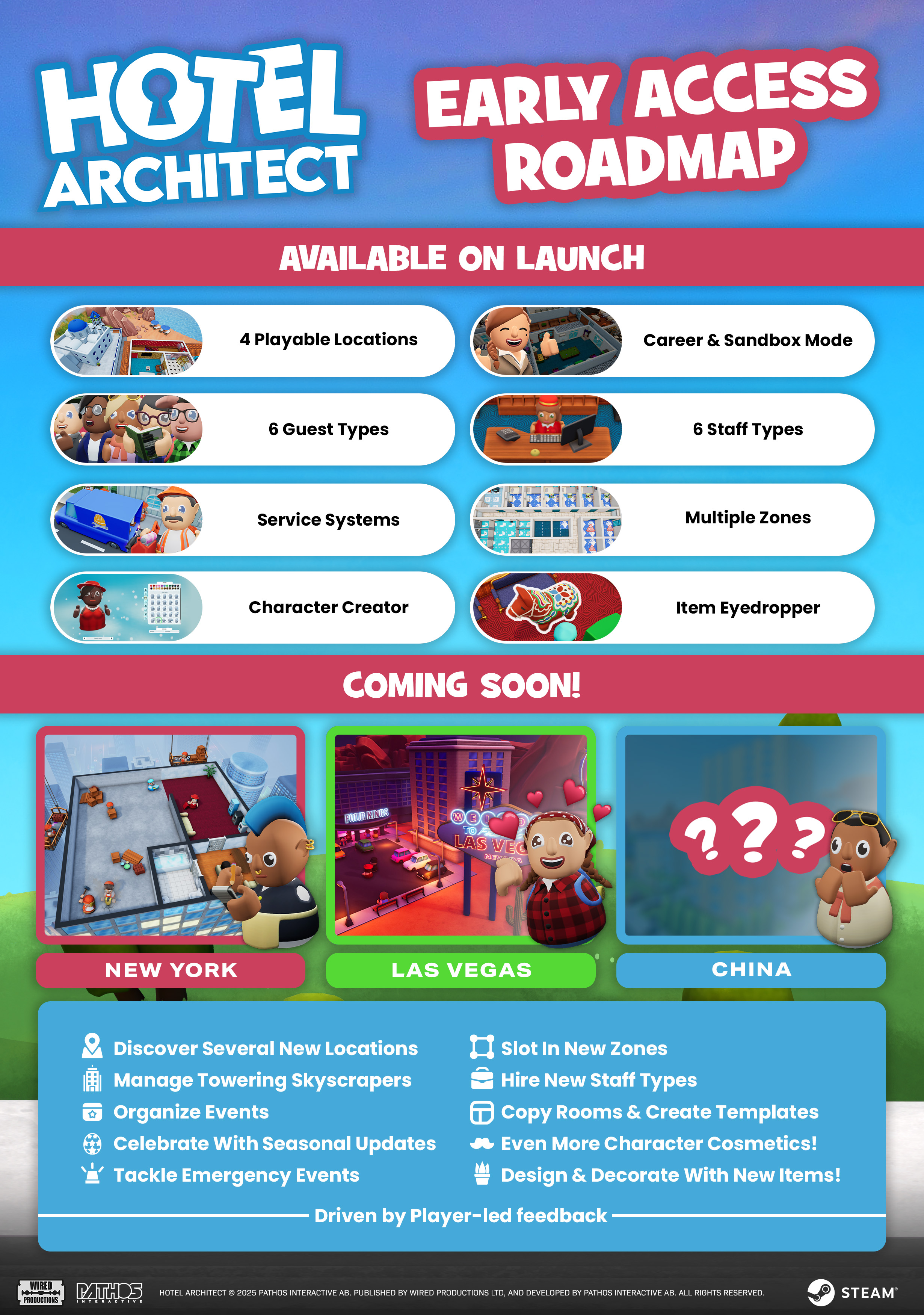 Konaklama sektörüne ilk adımlarını atarken otelini sıfırdan inşa et ve yaratıcılığını özgürce sergile. Kariyer mücadelesinde veya sandbox modunda, harap bir binayı yenile veya boş bir arsayı Empire State Binası'nın üzerinde yükselen bir otele dönüştür. Ardından ''The Ritz'' müşterilerini hayran bırakacak bir lobi tasarla ve süsle.